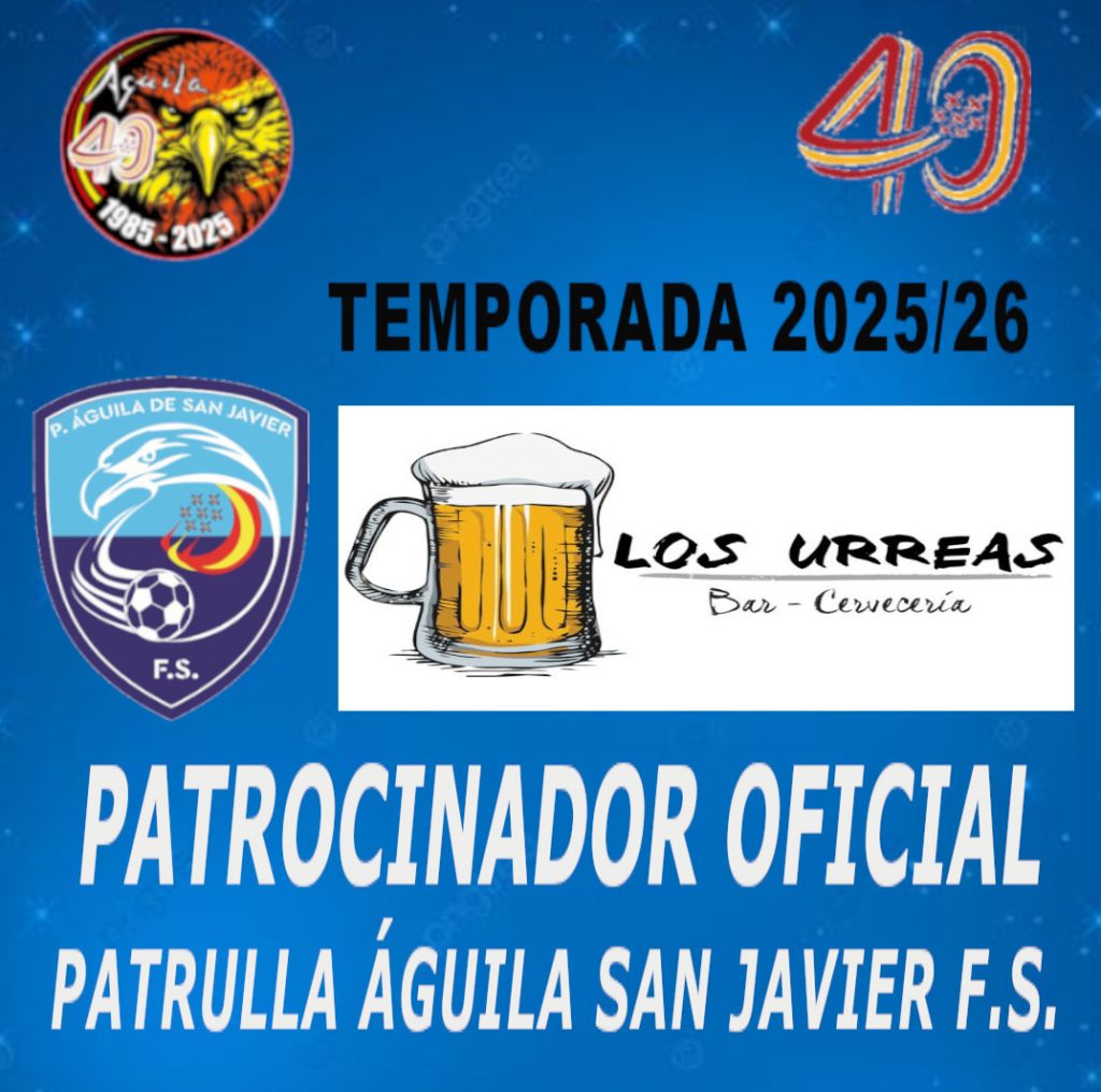 El club Patrulla Águila San Javier F.S. seguirá contando un año más con el patrocinio de Cervecería Los Urreas, un pequeño restaurante situado en el Polígono Industrial de Los Urreas en San Javier que ha apoyado a nuestro club desde el primer día.