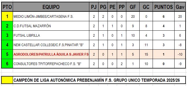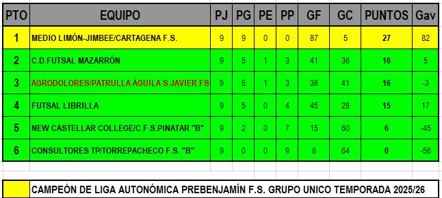 CLASIFICACIÓN LIGA AUTONÓMICA PREBENJAMÍN F.S. - GPO.ÚNICO