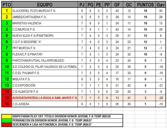 CLASIFICACIÓN DIVISÓN HONOR JUVENIL F.S. - GRUPO 7 RESULTADOS JORNADA 7ª (22-23 NOVIEMBRE 2025) CLASIFICACIÓN
