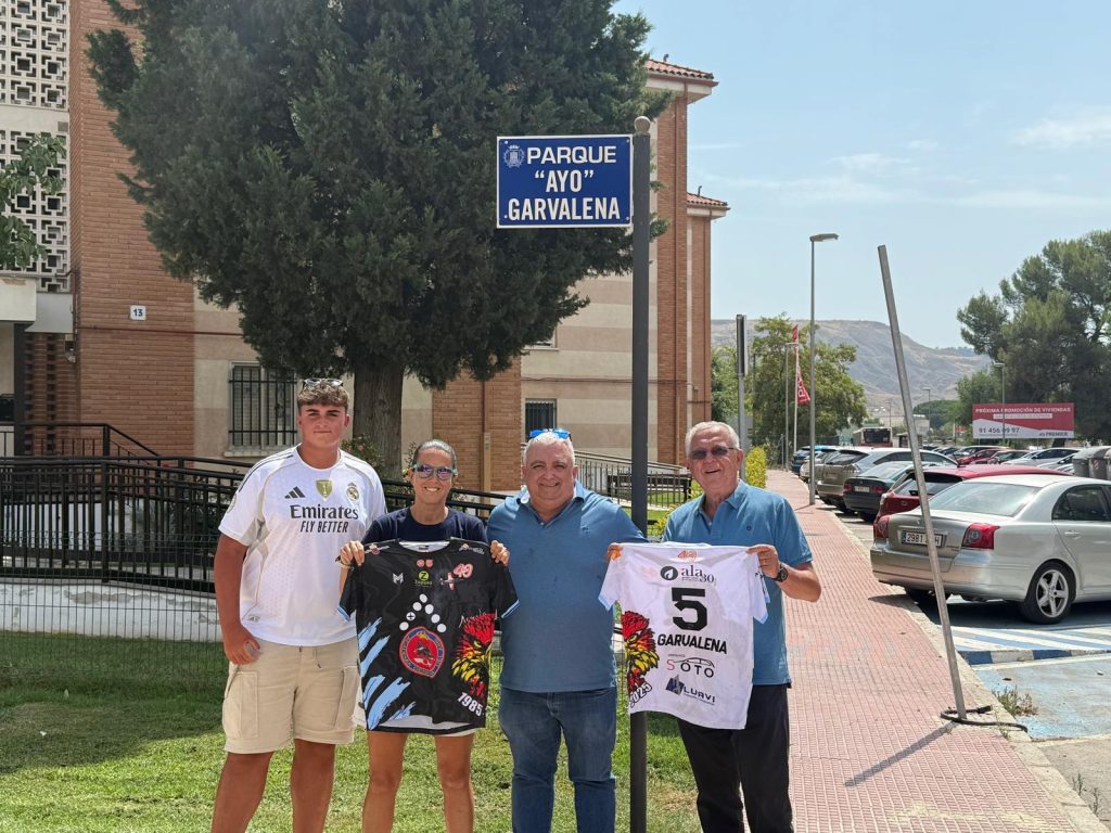 El ejercito del Aire donó un avión C-101 a la localidad de Alcalá de Henares como homenaje a este distinguido aviador, y este fue el lugar elegido por el club Patrulla Águila San Javier para entregar una camiseta de la equipación de juego de esta temporada tanto a la hermana como al padre de «Ayo Garvalena», Marta y Eduardo, que recibieron con alegría y satisfacción este pequeño obsequio y agradecieron al club Patrulla Águila este emotivo homenaje. Hay que señalar también que Eduardo Garvalena, el padre del fallecido estuvo de Coronel Director de la Academia General del Aire entre los años 2004 y 2006.