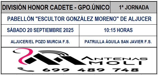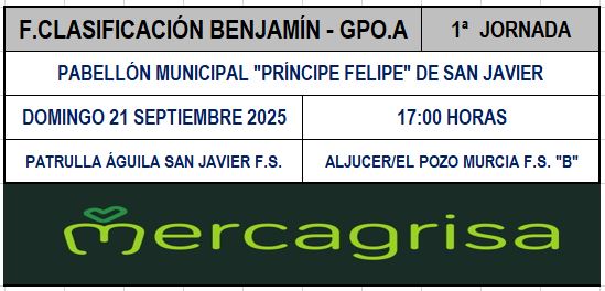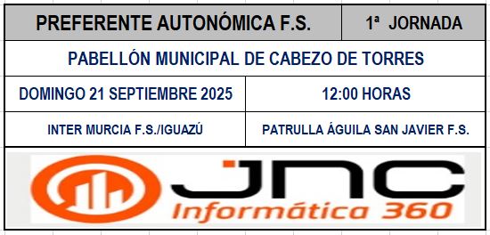 Sep 18, 2025Óscar Ramón Sanchez Saez´BENJAMÍN "B", ALEVIN, BENJAMIN, CADETE, CLUB, EQUIPO SORDOS, FFRM, INFANTIL, JUVENIL, NOTICIAS, PREBENJAMIN, SENIOR "A", SENIOR "B" HORARIOS PARTIDOS PATRULLA ÁGUILA SAN JAVIER F.S. (FIN DE SEMANA 20-21 SEPTIEMBRE) COLABORADORES PATROCINADORES