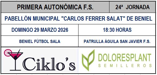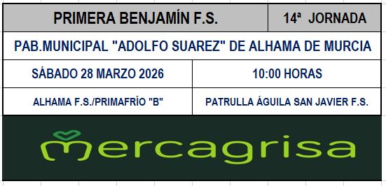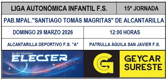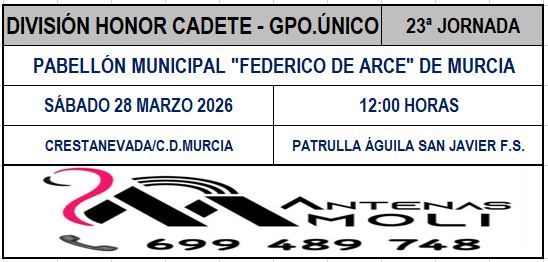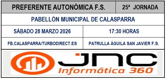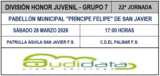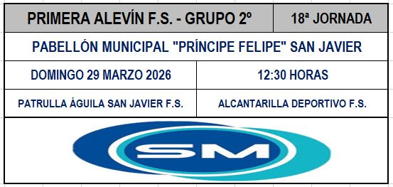 Mar 28, 2026Óscar Ramón Sanchez Saez´BENJAMÍN "B", ALEVIN, BENJAMIN, CADETE, CLUB, EQUIPO SORDOS, FFRM, INFANTIL, JUVENIL, NOTICIAS, PREBENJAMIN, SENIOR "A", SENIOR "B" HORARIOS PARTIDOS PATRULLA ÁGUILA SAN JAVIER F.S. (FIN DE SEMANA 28-29 MARZO) COLABORADORES PATROCINADORES