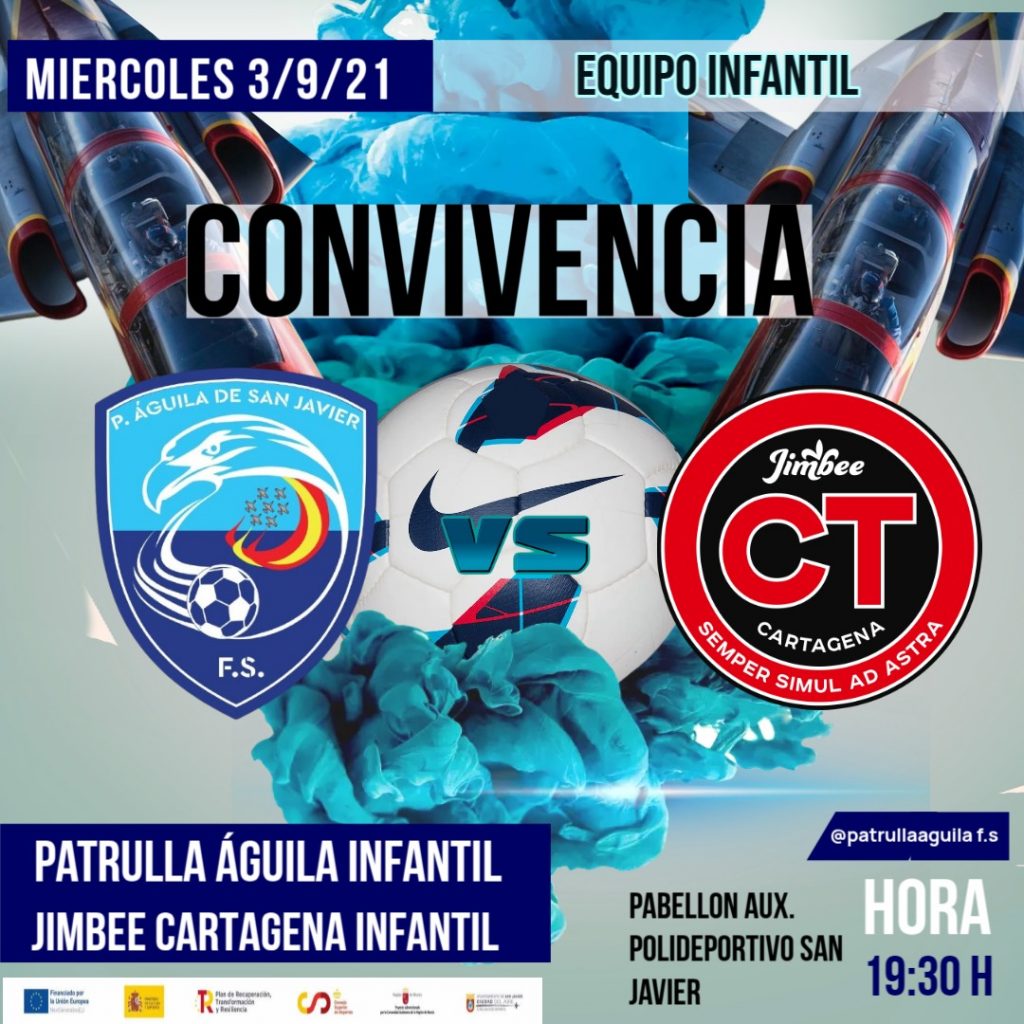El próximo miércoles 3 de septiembre, a las 19:30 horas, en el Pabellón Auxiliar Nº 1 del Polideportivo Municipal de San Javier se va a celebrar una Jornada de Convivencia de fútbol sala infantil entre los clubes Patrulla Águila San Javier F.S. y el Jimbee/Cartagena F.S.