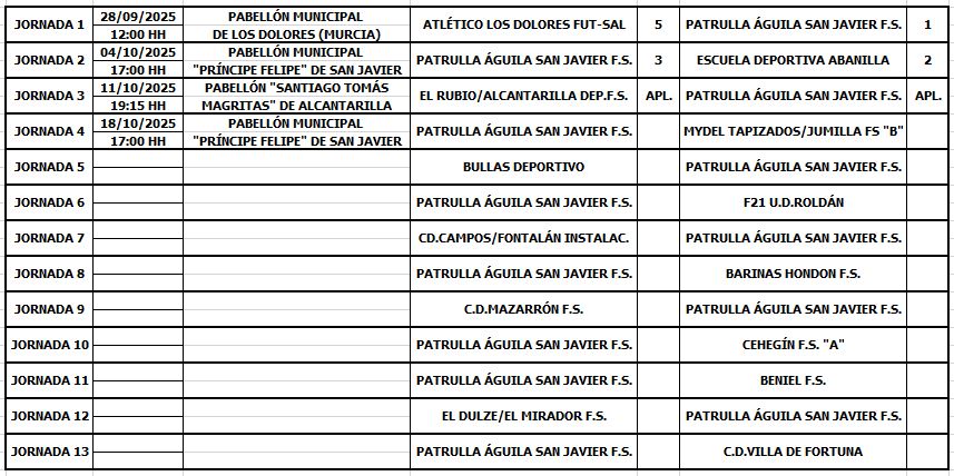 CALENDARIO DEL EQUIPO PRIMERA AUTONÓMICA F.S.